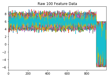 100개의 피쳐의 1000 시점동안 값의 변화를 시각화. 900 시점부터 분포가 바뀐다는 것을 알 수 있다.