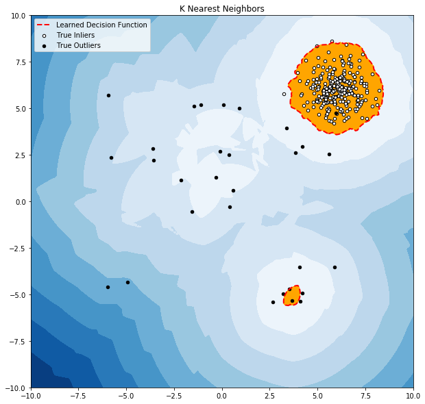 - 이상값이 훈련 데이터에서 가까운 근방을 형성할 확률이 매우 낮아 준지도 기법이 비지도 기법보다 이상값 감지 면에서 더 좋은 성능을 보인다.