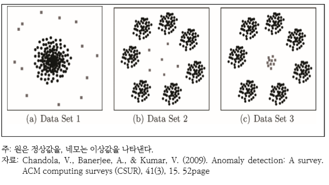 본 내용은 2018년 한국보건사회연구원 에서 출간한 ‘기계학습(Machine Learning)기반 이상 탐지(Anomaly Detection)기법 연구- 보건사회 분야를 중심으로’ 연구보고서를 정리한 내용입니다. 원문은 여기서 확인할 수 있습니다.
